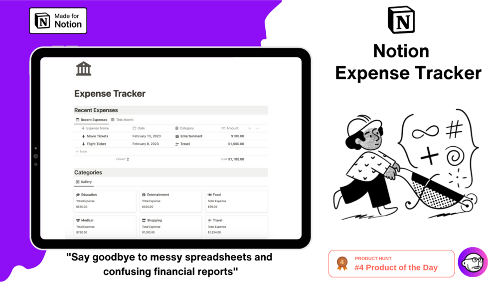Are you tired of losing track of your expenses? Do you struggle to stick to a budget every month? Look no further! Introducing our Expense Tracker template built in Notion.