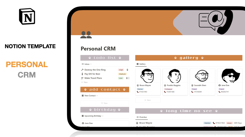Notion Personal CRM template is the perfect solution to keep your contacts organized and your networking productive.
