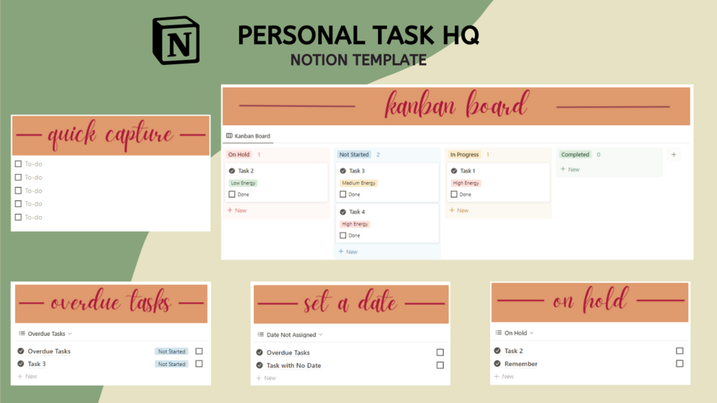 Are you tired of feeling overwhelmed and disorganized? Are you struggling to keep track of your tasks and projects? Look no further than our Personal Task HQ built in Notion!