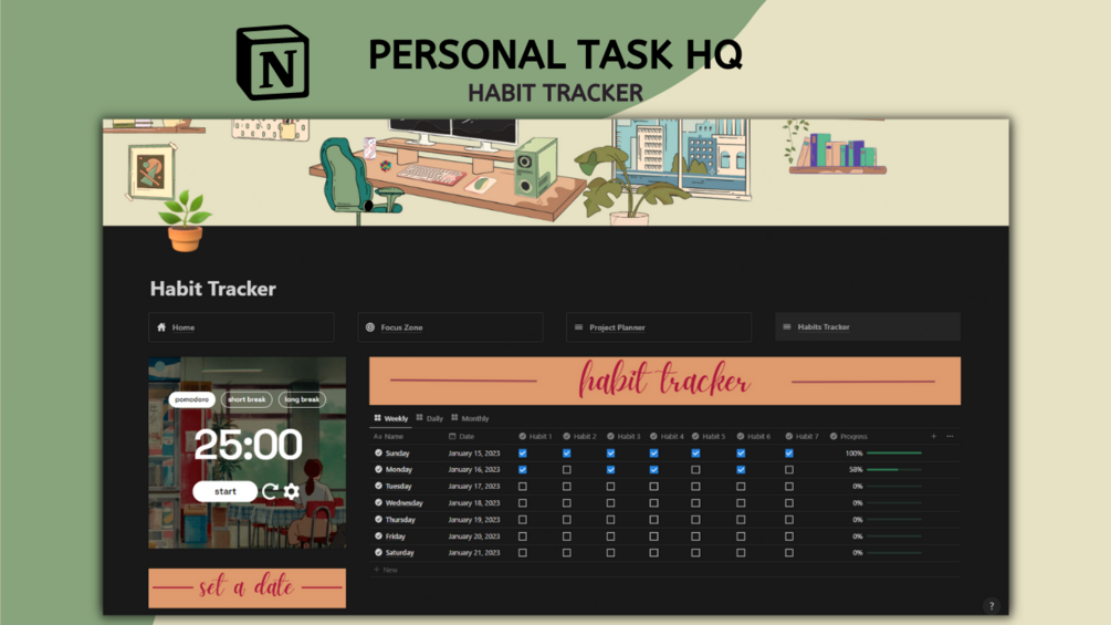 ✅ Habit Tracker: You can set up different habits and track your progress by checking off completed tasks and a visual representation of your progress will help you to stay motivated and on track.