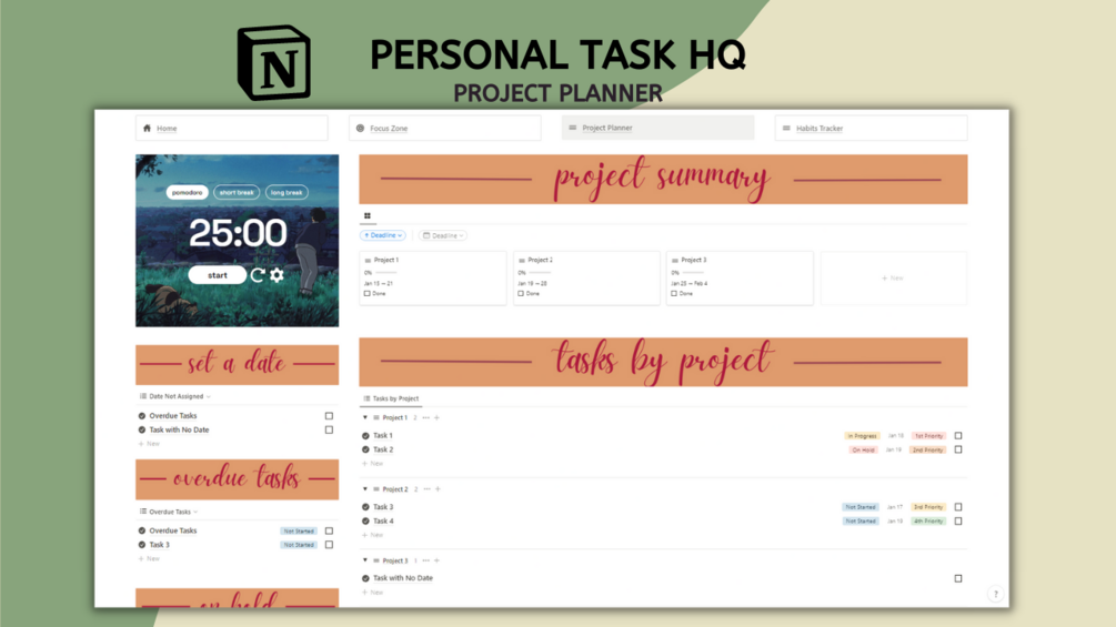 Are you tired of feeling overwhelmed and disorganized? Are you struggling to keep track of your tasks and projects? Look no further than our Personal Task HQ built in Notion!