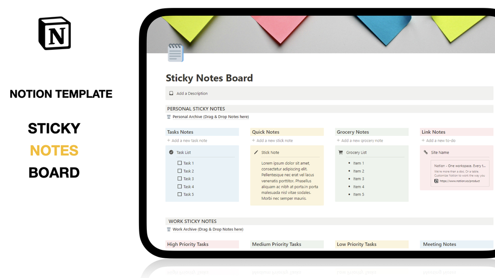 Are you looking for a simple and effective way to keep track of your tasks, meetings, and notes? Look no further than the Sticky Notes Board Notion Template!