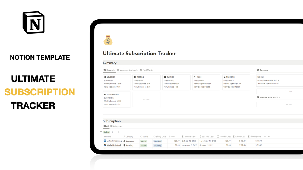 Keep track of all your Subscriptions in one single place with Notion Subscription Tracker. I have created this template with Notion beginners in mind, making it easy and intuitive for everyone.
